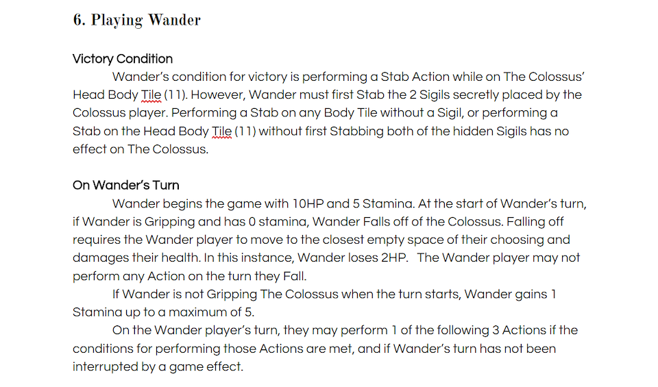 docs.google.com/document/d/1135XLEAmZktnPzKymGxj6R9rcwLqNuiU5eDvU9C7cJ0/edit?usp=sharingA two-player war game that simulates Wander’s encounter with the first Colossus. Follow the link for the post-mortem and ruleset.